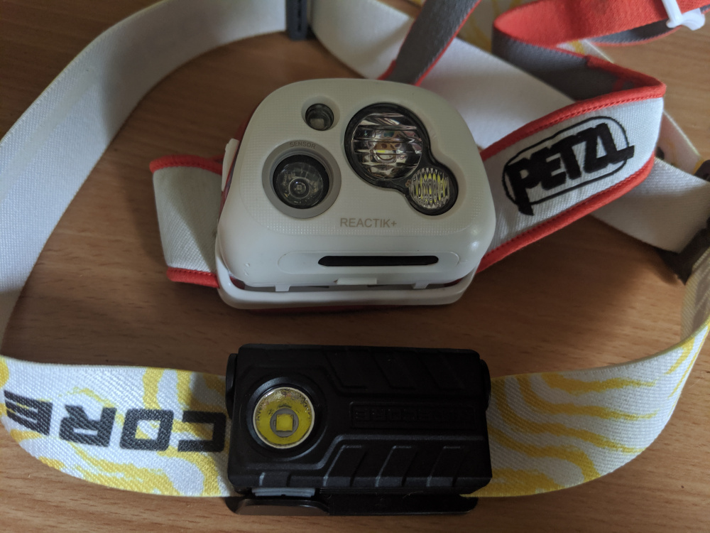 I changed my Frontal lamp. from a Pretzl Reactik+ weighing 110 gms, to a Nitecore-nu20-rechargeable only 52 gms. Just as good, basically only need it for reading in ‘bed’ or going to the loo in the middle of the night etc. Half the weight & size as can be seen in the photos.